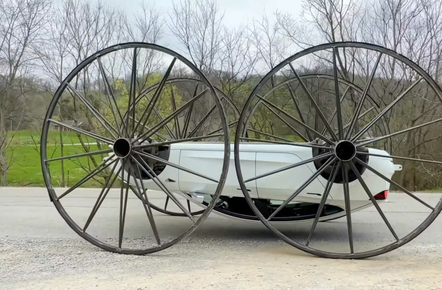 Автори YouTube-каналу WhistlinDiesel, які регулярно дивують своїх фоловерів трюками на автомобілях, опублікували нове відео — заїзд на «модернізованій» Tesla Model 3. Команда Коді Детвайлера встановила на електроседан спеціально виготовлені сталеві колеса заввишки 3,05 метра. Саме вони дозволили автомобілю пересуватися вверх «ногами», не торкаючись дахом землі. Щоправда, перевертати «Теслу» довелося за допомогою екскаватора.