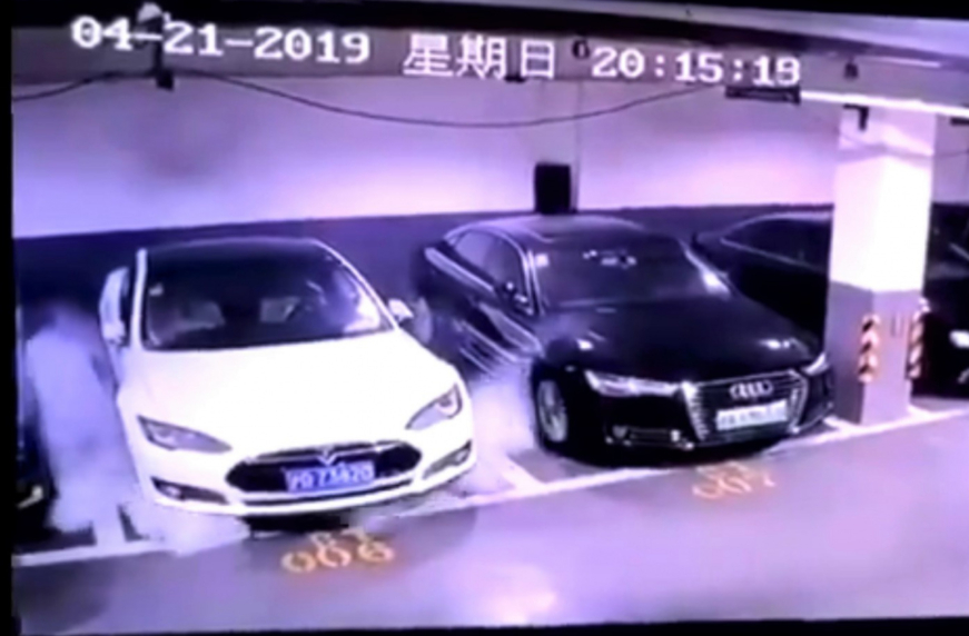 На свежем видео из Шанхая, о котором, кажется, написали и рассказали абсолютно все СМИ нашей планеты, мы видим белую Tesla Model S на подземной парковке. Сперва обратите внимание на дым, появляющийся из-под электромобиля. Довольно быстро после этого происходит взрыв. Ролик произвел невероятный резонанс в Сети.
