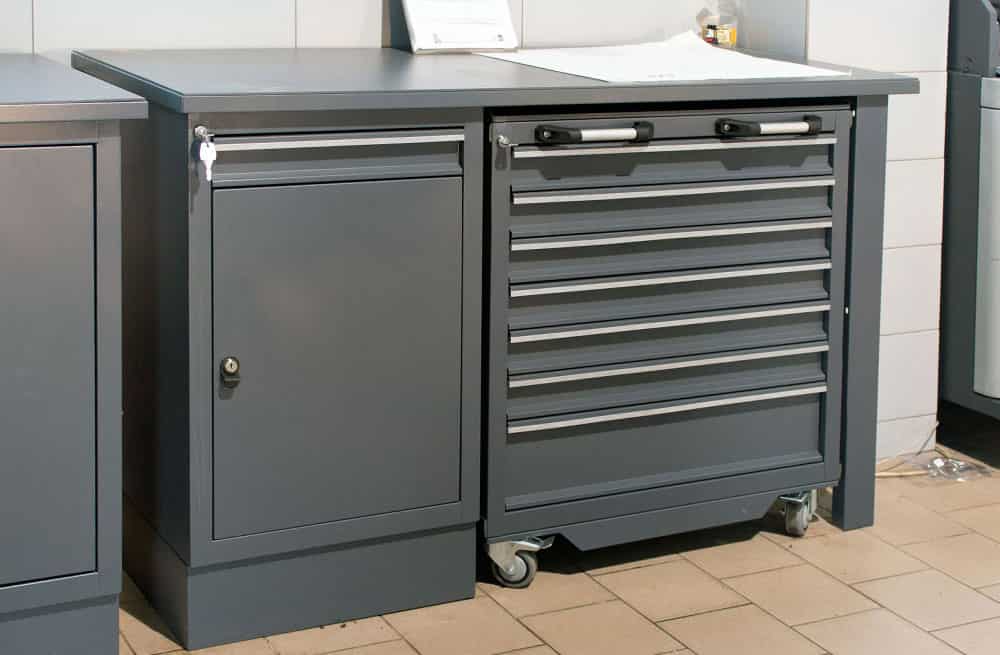 Инструментальные тележки обладают корпусной конструкцией, которая считается самой надежной. Она состоит из прочного каркаса, элементы которого имеют сварную сборку. Изделие не расшатывается при ежедневном использовании, а швы не пропускают влагу. Сверху тележки может размещаться маслобензостойкий коврик или пластиковая подставка с ложементами. Это формирует дополнительный рабочий стол, который может использоваться для потребностей СТО. Передняя часть инструментальной тележки оснащается ящиками или дверями. Внутри них вмещается разнообразная оснастка, материалы и документы. В зависимости от модели, комплектация включает маленькие, средние или большие ящики. Они надежно закреплены к корпусу, а также выдвигаются на телескопических направляющих. Такая конструкция открывает полный доступ к содержимому, что облегчает поиск материалов.