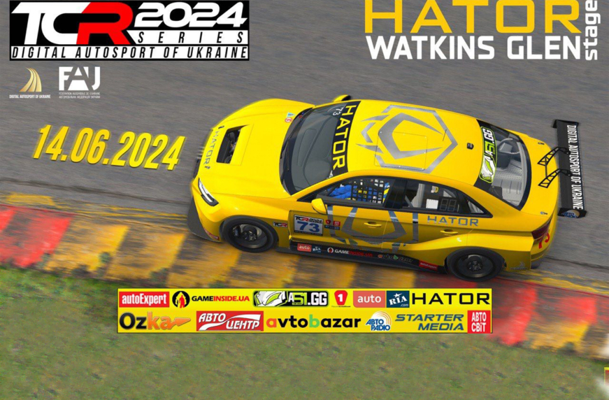 HATOR Stage на легендарному треку Watkins Glen збирає найвідданіших шанувальників цифрового автоспорту на 6 етап Міжнародної віртуальних перегонів серії Digital Autosport Of Ukraine: TCR Series-2024.