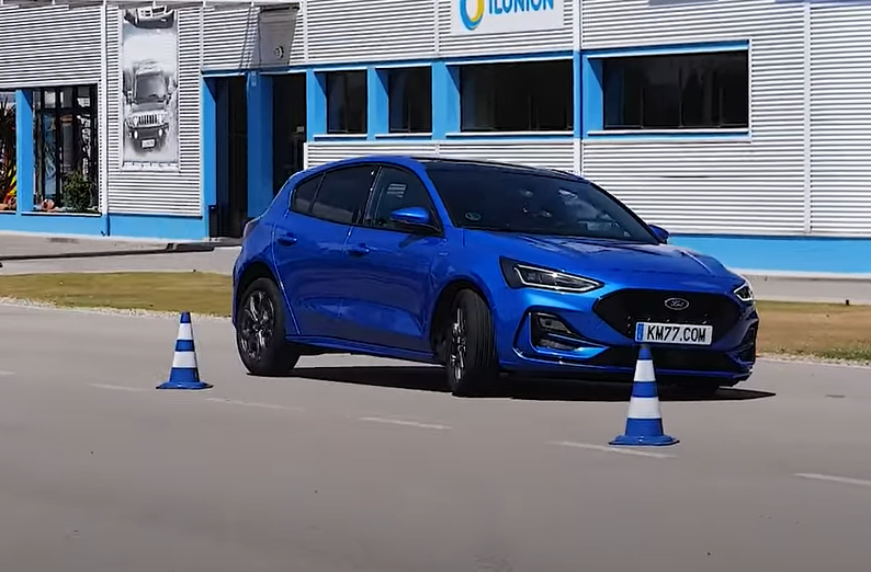 Спочатку Ford Focus перевірили на слаломі, який він пройшов з легкістю, не зачепивши жодного конуса. На проходження смуги йому знадобилося 25,1 секунди. Це непоганий результат для автомобіля цього класу.
