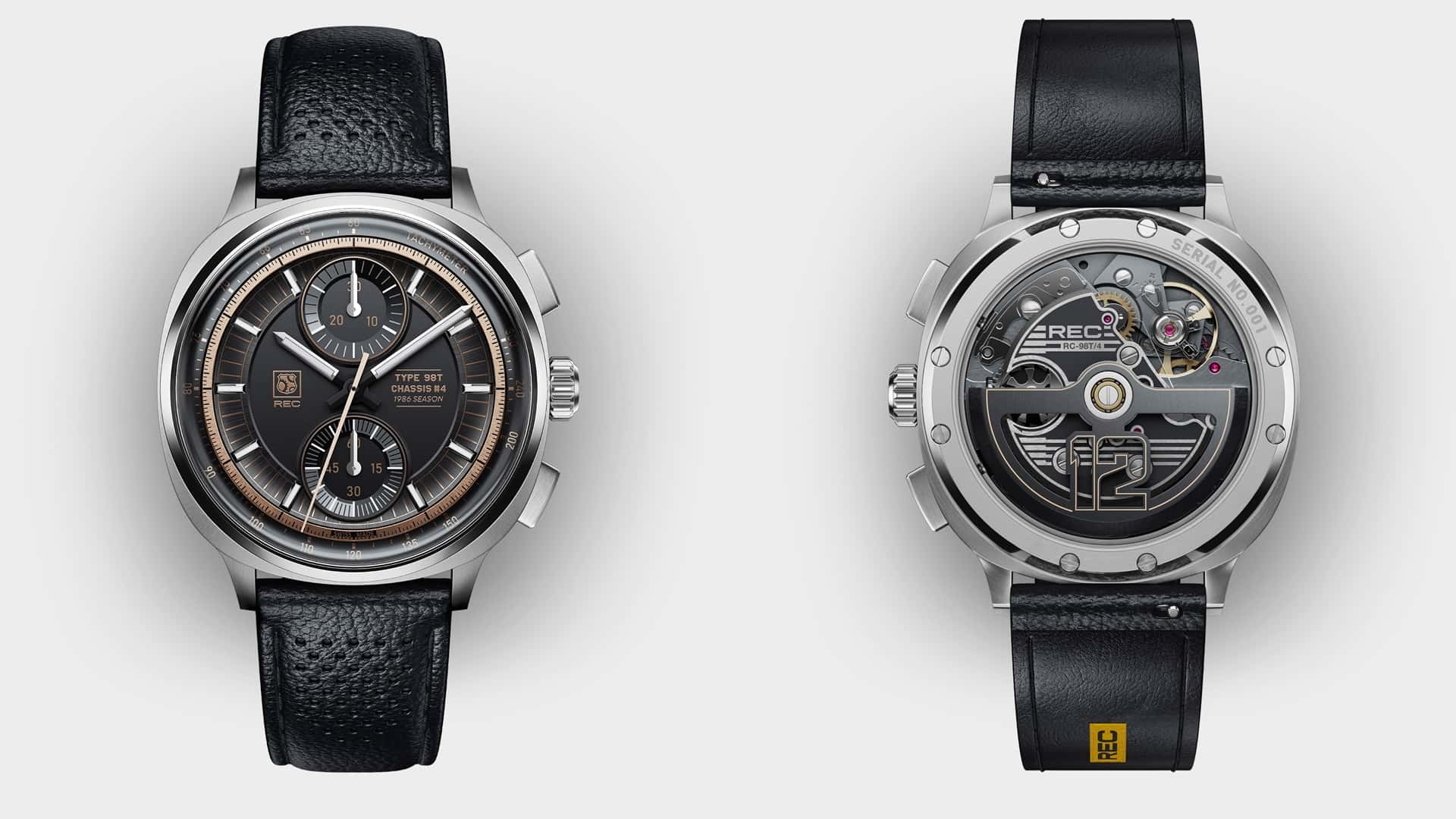 Rec Watches представила новий годинник обмеженої серії 98T/4, створений у співпраці з Classic Team Lotus. Зовні він оформлені в культовій чорно-золотій кольоровій схемі, що й боліди JPS F1. Але основна особливість годинника серії 98T/4 — в них використані компоненти автомобіля Lotus 98T John Player Special з шасі №4. На цьому боліді Айртон Сенна виступав у сезоні 1986 року.