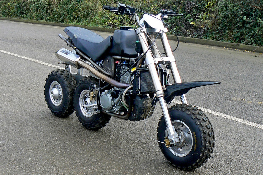 Как известно, двигатель прогресса всегда или лень, или обстоятельства непреодолимой силы. Однажды британец Джон Парсонс поймал эпичный хайсайд на своем Kawasaki ZX-9, подскользнувшись в повороте во время дождя. История не имела бы продолжения, не будь Джон работником аэрокосмической области и талантливым инженером. Именно таким образом ему пришла в голову идея подруливающего заднего колеса, которое, по мнению инженера, могло бы добавить стабильности мотоциклу в сложных погодных условиях, а также поспособствовать его более прогнозируемому поведению. Что интересно, перед этим Джон активно размышлял над созданием трехколесного одноколейного мотоцикла, насмотревшись на столь любимые им пляжные гонки, где обычные двухколесные байки беспомощно утопали в песке. Сложив воедино обе мысли, Джон пришел к интересной задумке…