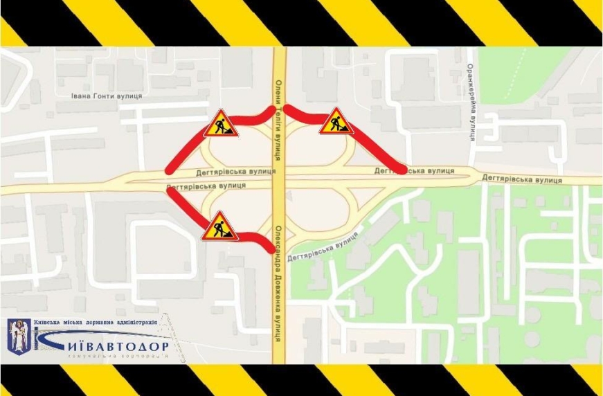 «Київатодор» повідомив про перекриття руху транспорту ще по одному з’їзду Дегтярівського шляхопроводу. Йдеться про з’їзд із вулиці Дегтярівської на вулицю Олени Теліги. Від сьогодні, 1 березня, його перекрито до 5 квітня.