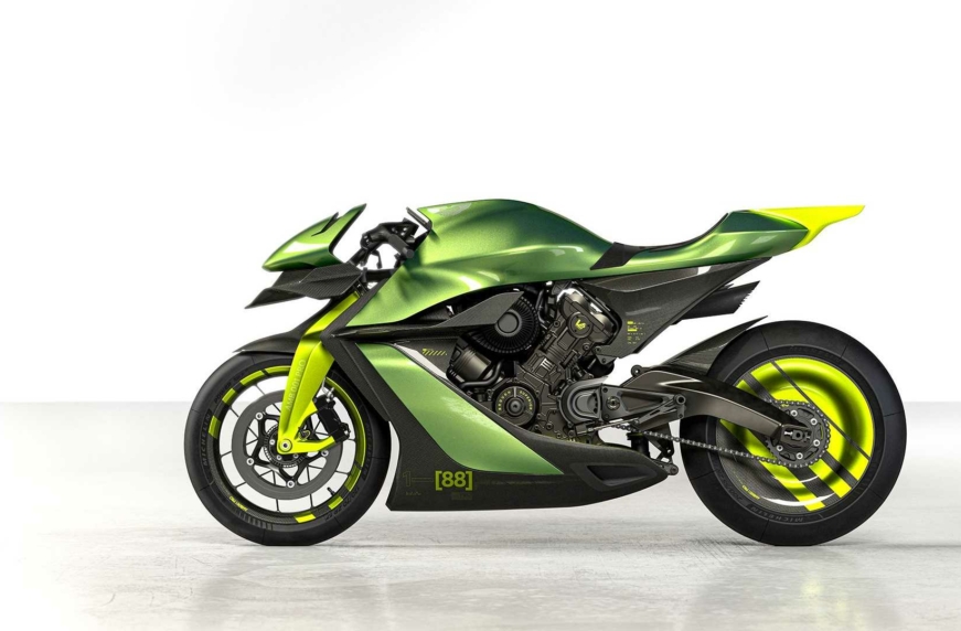 Мотоцикл пофарбований у поєднання зеленого Aston Martin Verdant Jade, чорного Cerakote та кислотно-жовтого Photon Lime. На «носі» та бензобаку — логотипи, виконані методом хімічного травлення. Вони на 30% тонші за людське волосся і на 99,4% легші за звичайні.