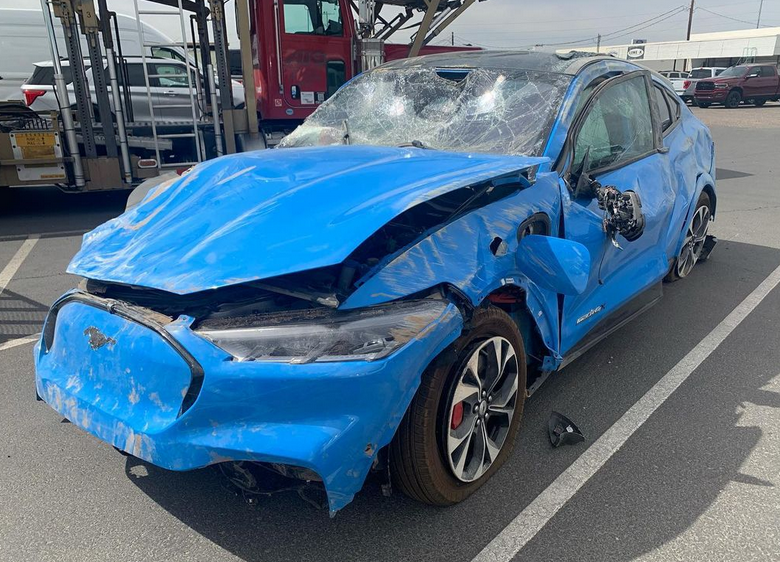 У электрокара Ford Mustang Mach-E не уцелела ни одна из кузовных панелей, поэтому машину ждет утилизация