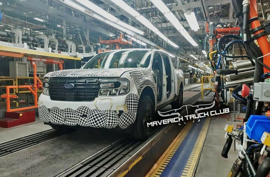 Компактный пикап Maverick американской компании Ford, который позиционируют как младшего брата F150, постепенно приобретает черты реального автомобиля. Если ранее в поле зрения фотошпионов попадал голый кузов авто, то теперь им удалось запечатлеть новый внедорожник Форд прямо на конвейере завода компании в Эрмосильо, Мексика.