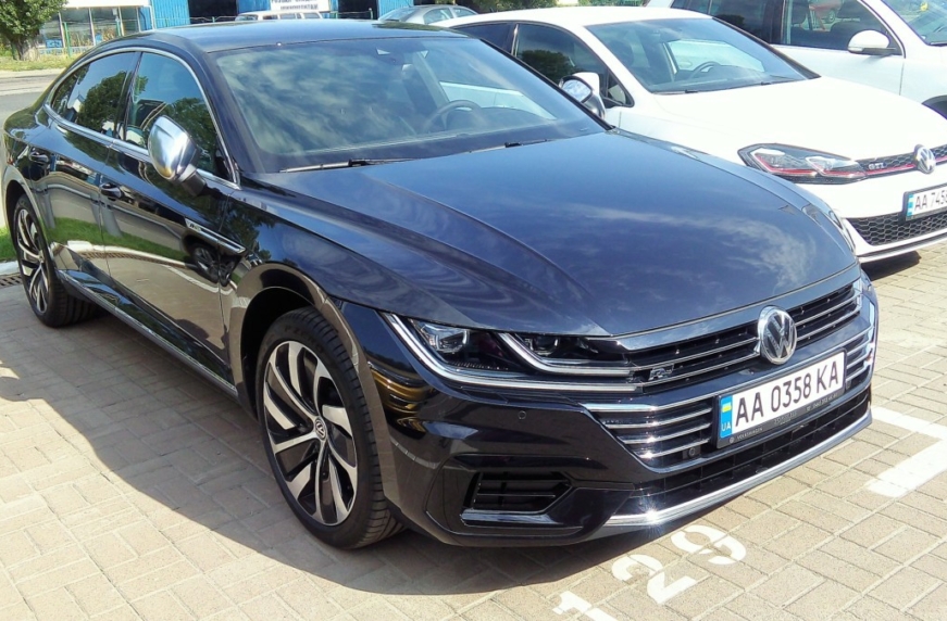 Так, журналісти «Автоцентру» побачили біля салону київського дилера «Порше Захід Київ» одразу два Arteon – в білому і чорному кольорах. Як виявилося, вони представлені в різних конфігураціях. Білий – у середній версії Elegance (існує ще базова, але її в Україну не привезли). Чорний – в найдорожчій R-Line. Цікаво, що версії «Артеона» відрізняються не тільки наявністю обладнання, а й можливістю вибору кольорів кузова – у R-Line їх більше.