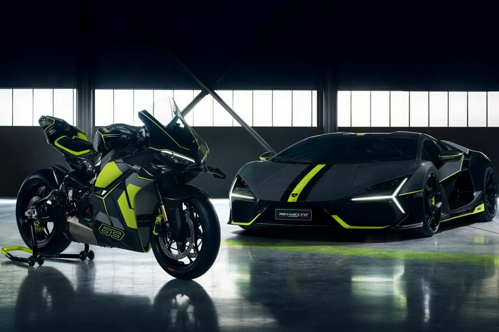 Два культові італійські бренди Ducati та Lamborghini вкотре вирішили створити колаборацію. Цього разу лімітована серія супербайків присвячена суперкару Revuelto. Новинка одержала ім’я Ducati Panigale V4 Lamborghini. Від звичайного Panigale V4 S версія Lamborghini відрізняється оригінальними кузовними панелями з карбону, аналогічного тому, що використовується при виготовленні Revuelto. Також мотоцикл отримав особливу ліврею, яка поєднує в собі відкрите вуглецеве волокно із зеленим (Verde Scandal) та сірими (Grigio Telesto/Grigio Acheso) елементами.
