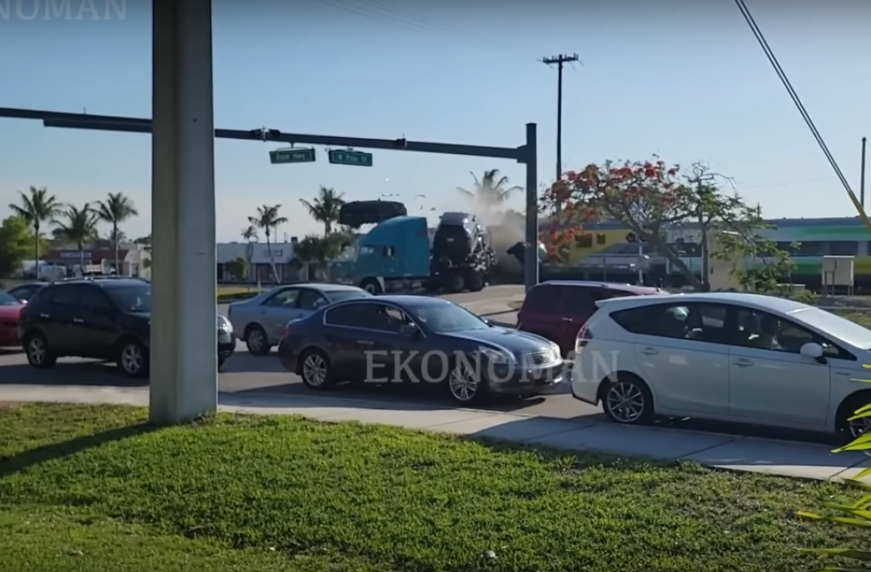 Інцидент стався в Лантані (штат Флорида, США). Двоярусний автовоз, що перевозив преміальні автомобілі, застряг на залізничному переїзді. Поки водій шукав вихід із ситуації, що склалася, загорівся червоний сигнал світлофора, який повідомив про швидке наближення поїзда.