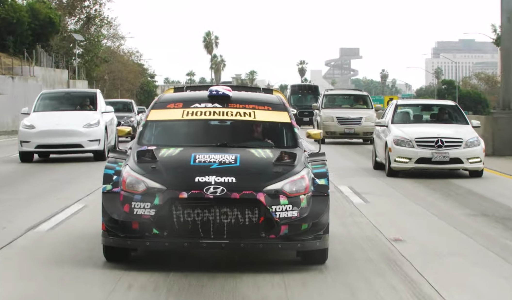 Американський гонщик та шоумен Кен Блок опублікував відео заїзду на ралійному Hyundai i20 WRC вулицями Лос-Анджелеса. З його слів, цей заїзд став для нього всього роду відкриттям. Раніше він використовував ралі-кар тільки для участі у перегонах бездоріжжям й зовсім забув, що у автомобіля є допуск до доріг загального користування.