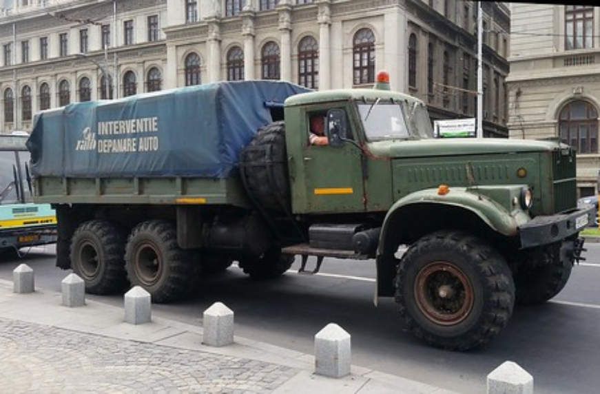 На вулицях українських міст частенько можна побачити повнопривідні КрАЗ-255б1, прозвані “лаптіжниками”, які працюють евакуаторами автобусів і тролейбусів, що поламалися на маршруті. Виявляється, наші КрАЗи займаються тим самим і в румунській столиці — Бухаресті.