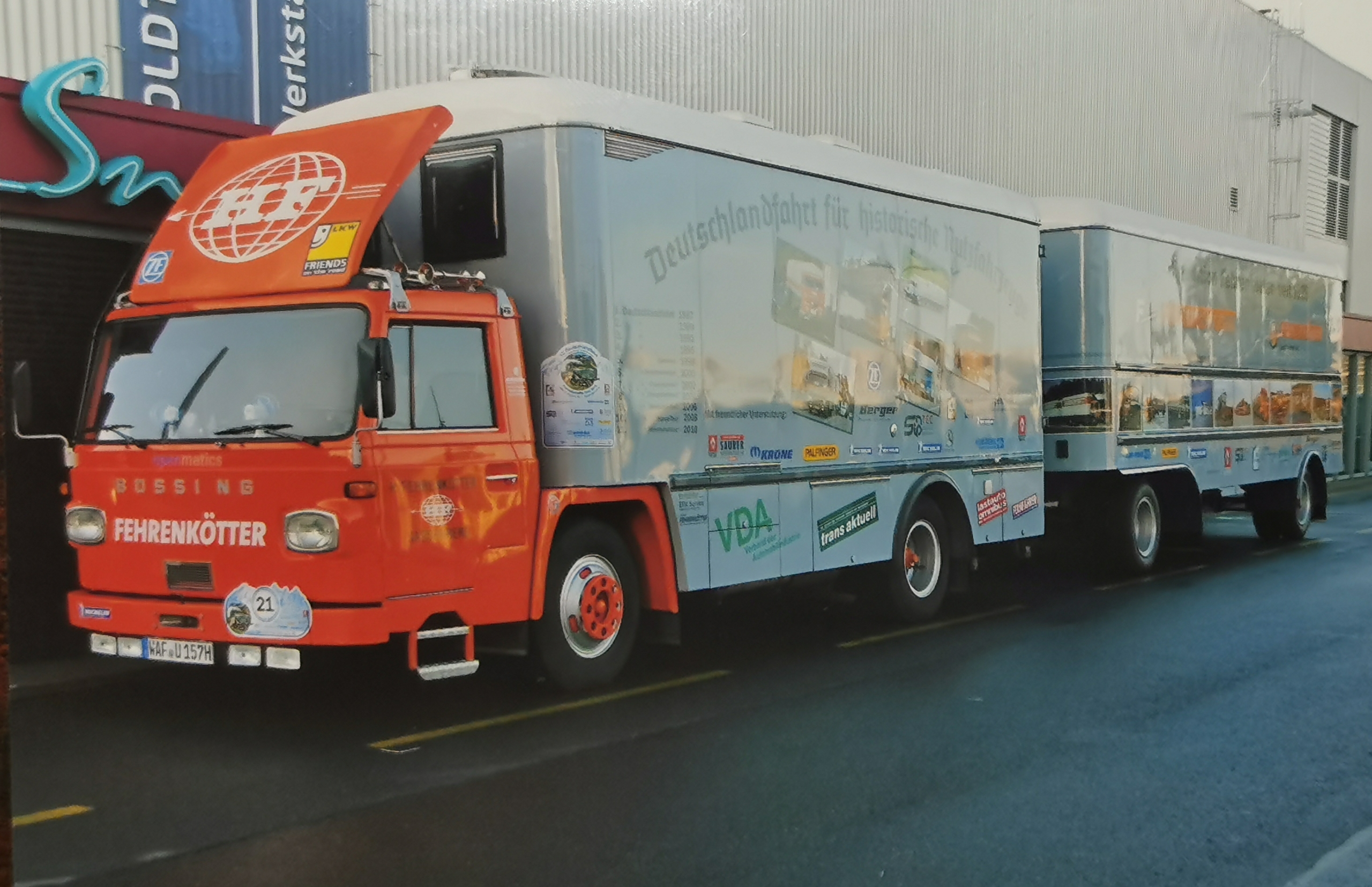 Це була магістральна вантажівка марки Bussing – тривісна модель 12000 U (Unterflur), з колісною формулою 6х2, довжиною 12 м і вантажопідйомністю 15,7 т. Мотор був слабенький – 175 к. с. Преса та публіка спочатку не оцінили новинку належним чином, вдалося реалізувати лише 39 таких машин.