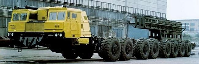 Всего через год здесь соберут восьмиосное шасси МАЗ-7906 с колесной формулой 16х16, а еще через год – двенадцатиосное (!) МАЗ-7907 (24х24). Оба они имели грузоподъемность 150 т и предназначались для транспортировки новой трансконтинентальной ракеты РТ-23 «Молодец» массой более 100 т. Об этих машинах мы уже в свое время подробно рассказывали.