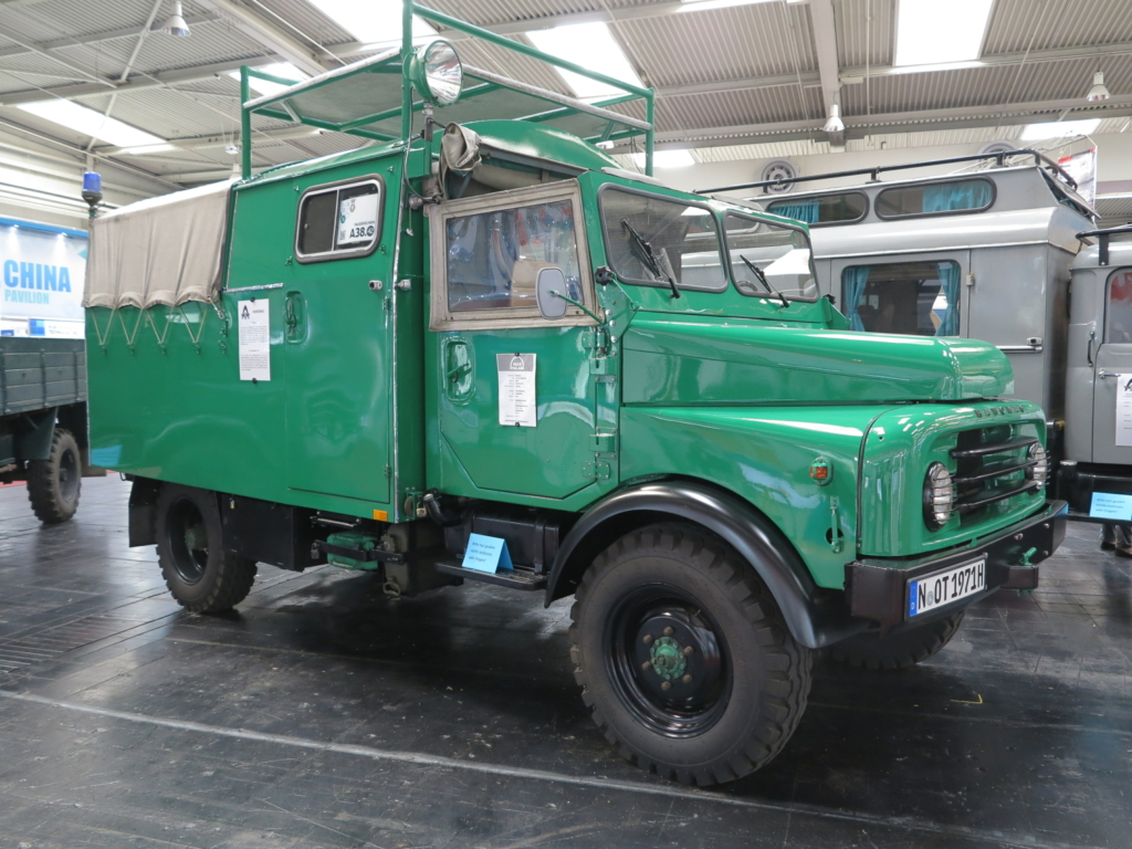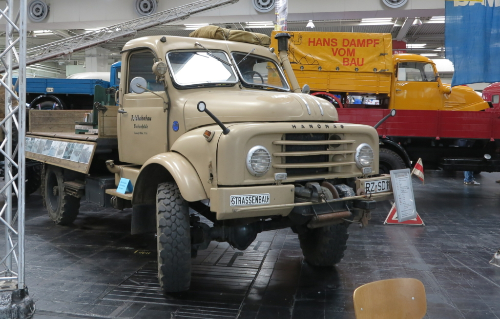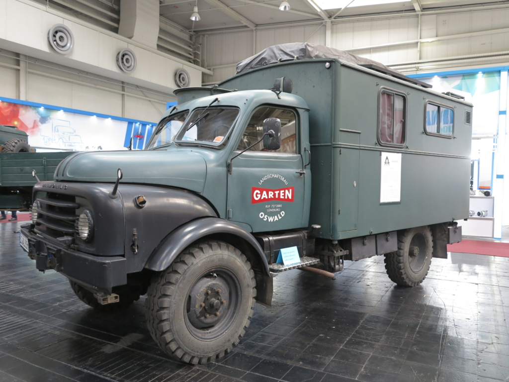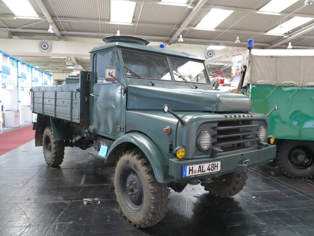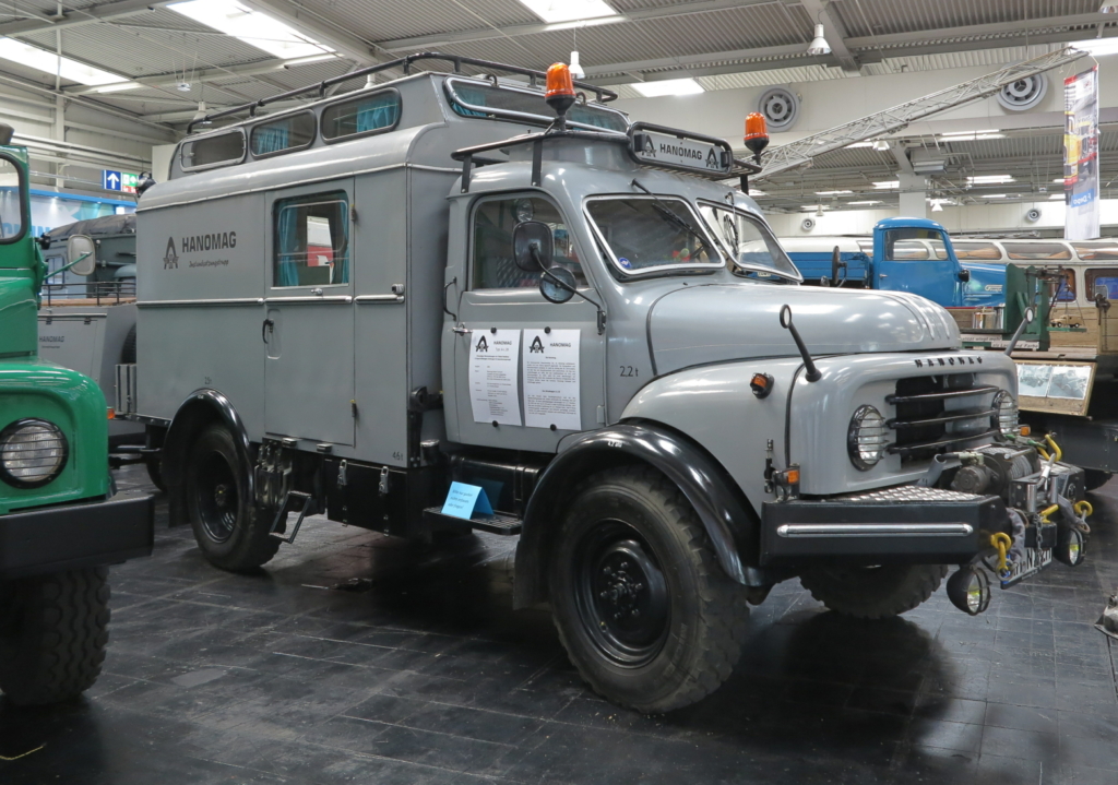Зі стандартним армійським кузовом-фургоном і кабіною округлої форми. В експозиції клубу любителів Hanomag на автосалоні IAA-2018 у Ганновері. Фото автора