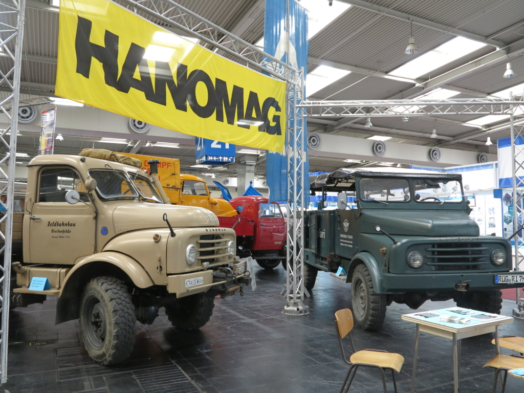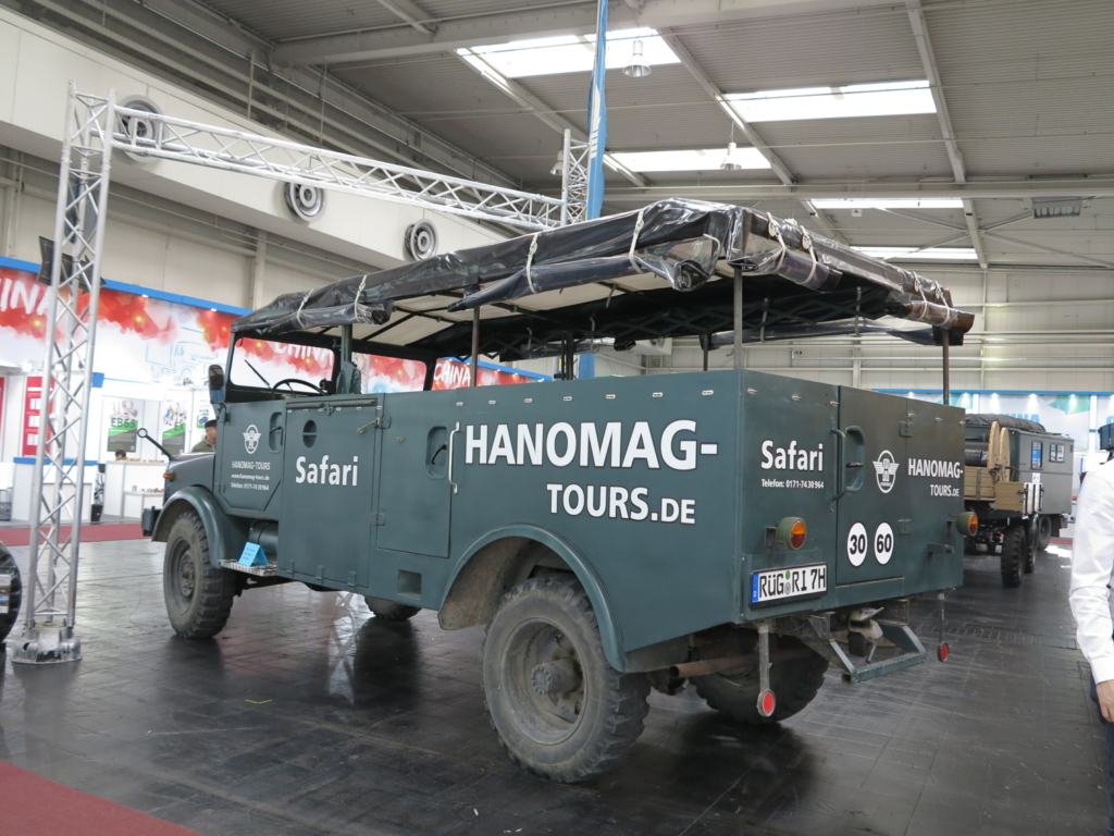 Ретро-експозиція клубу любителів Hanomag на автосалоні IAA 2018 у Ганновері. Ліворуч – машина з бортовою платформою. Праворуч – штабний варіант, з відкритим пасажирським кузовом. Автомобілі також відрізняються формою капота і передніх крил.