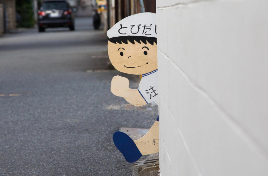 Тоді ж на японських дорогах з’явилися мальовані дорожні знаки, відомі як «Тобіти-кун» або «Тобідасі Бой», які стали символами безпеки дорожнього руху. Це фігурка хлопчика, який зробив крок на проїжджу частину із-за непрозорої перешкоди. Він повинен був нагадувати водіям про пішоходів, що несподівано з’являються на дорозі, та необхідність знизити швидкість. Зазвичай такі мальовані фігурки встановлювали у шкільних зонах.