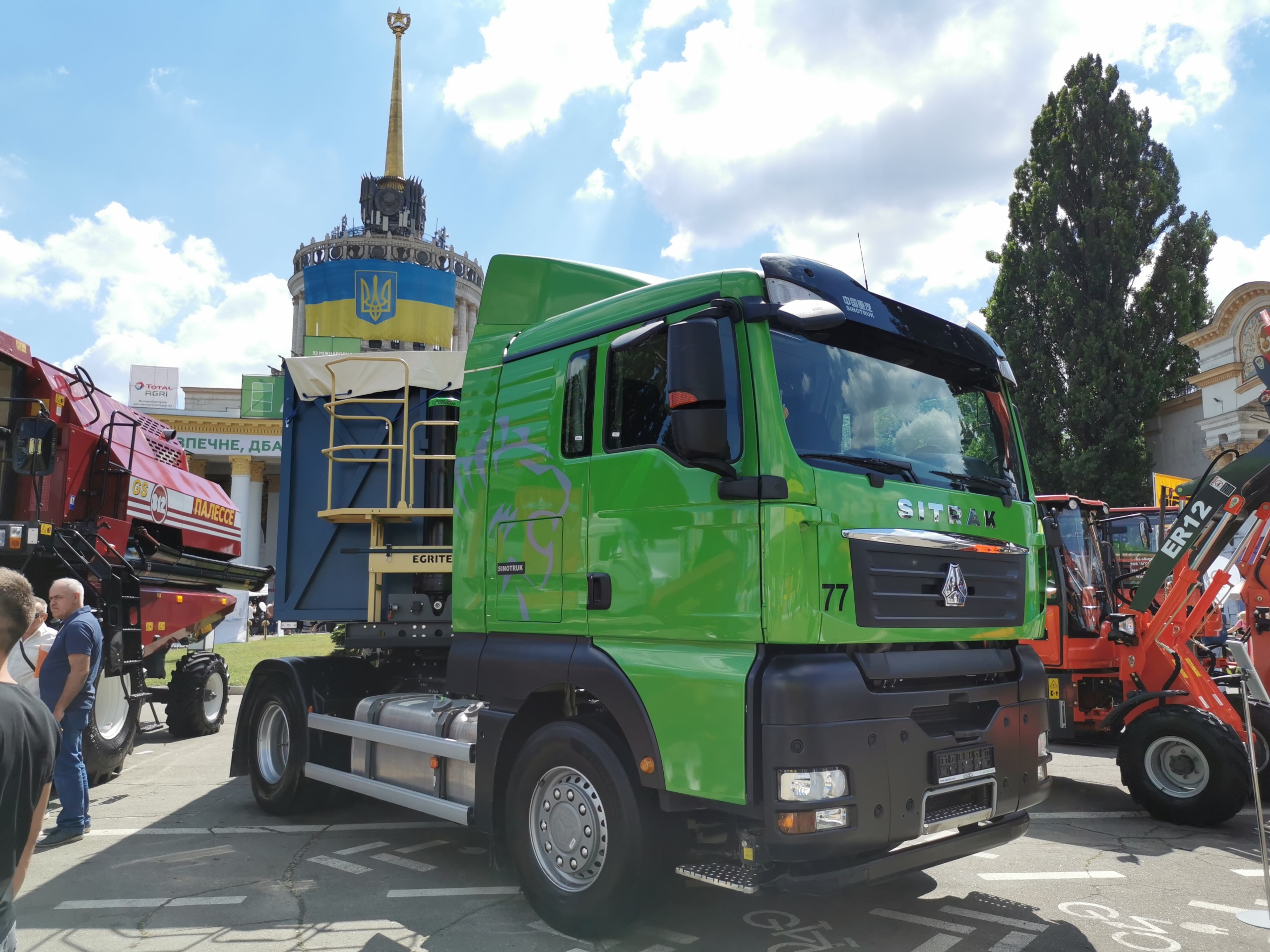 Тягач может работать в составе автопоездов полной массой 44/60 т. На выставке он был в сцепке с 52-кубовым самосвальный полуприцепом-зерновозом от украинского производителя Egritech.