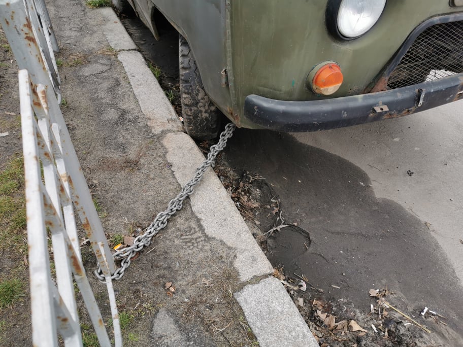Сегодня в Украине угоняют автомобили какие угодно и где угодно. Причем мишенью злоумышленников могут стать не только дорогие машины, но и отслуживший свое транспорт, место которому в музее. И за примерами далеко ходить не нужно. Свою старенькую УАЗ Буханку столичный владелец буквально приковал к столбику железной ограды, вернее, посадил на цепь.