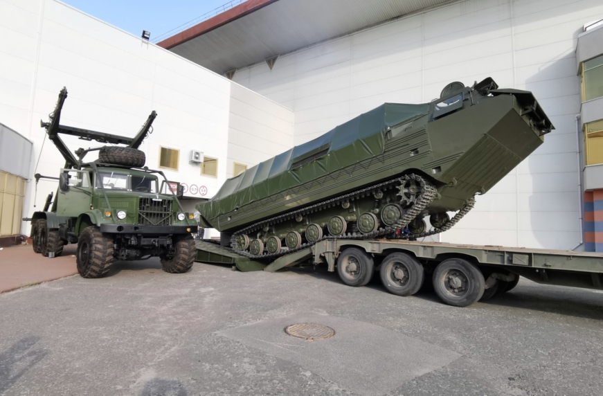 Особенно впечатлила подготовка в транспортировке гусеничной техники – в частности большого плавающего транспортера ПТС-2. Эту машину вывозил армейский вездеход КрАЗ-260 (6х6) на специальном трейлере-тяжеловоза.