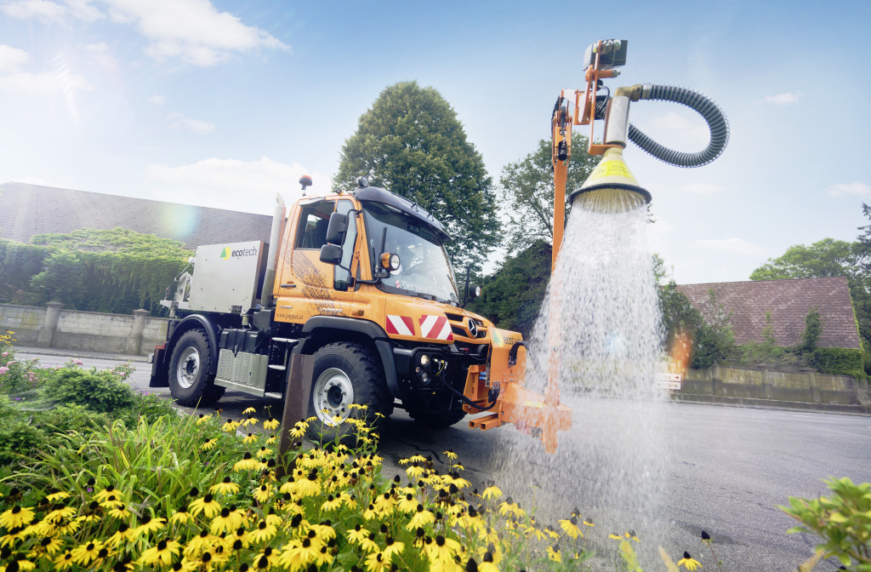 У самий розпал літа, коли температура повітря зашкалює, так приємно сховатися в тінистому парку. Однак щоб зелень не всохла, за нею потрібен догляд. Так, наприклад, дорослому дереву щодня необхідно близько 200 л води. Ось тому для поливання комунальні служби застосовують різну техніку, зокрема і на базі всюдиходів Mercedes-Benz Unimog.