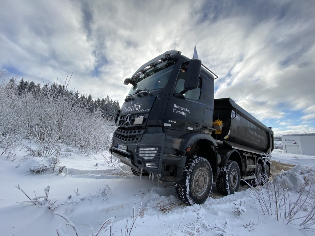 Mercedes-Benz Arocs transportiert Schnee für den Baithlon-Weltcup