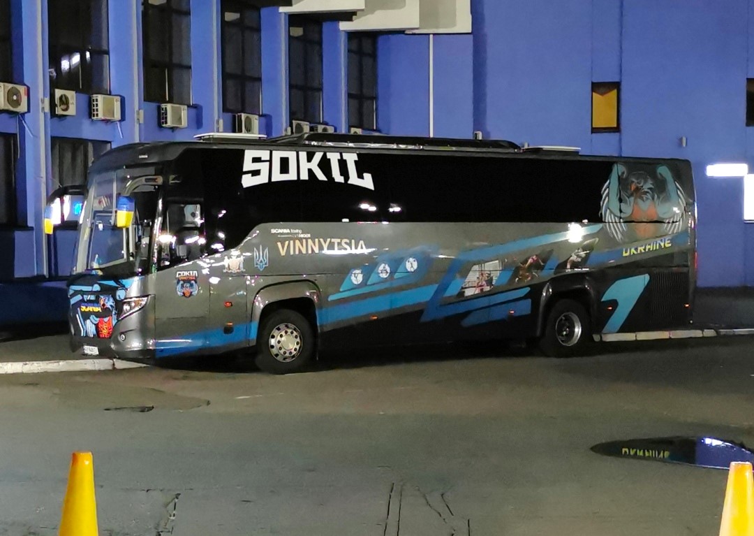 На бортах, а також на передній та задній масках кузова намальований грізний сокіл, що грає м’язами. Цікаво, що цей логотип «Cokіл Вінниця» дуже нагадує фірмову емблему Scania у вигляді голови грифону.