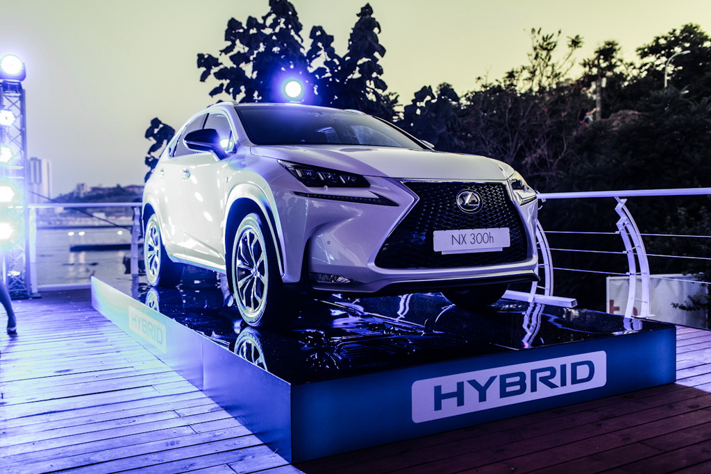 Главным и единственным представленным автомобилем на вечеринке стал гибридный кроссовер Lexus NX 300h F Sport белого цвета, который отличается инновационным выразительным дизайном.