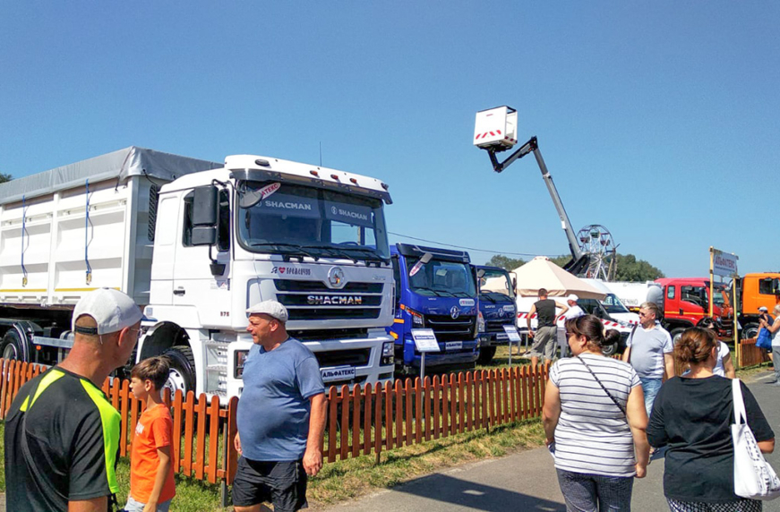 Найбільшим в експозиції є самоскид-зерновоз SHACMAN F3000 колісної формули 6х4. Він має вантажопідйомність 22 т і оснащений кузовом двостороннього розвантаження об’ємом 29,5 м куб.