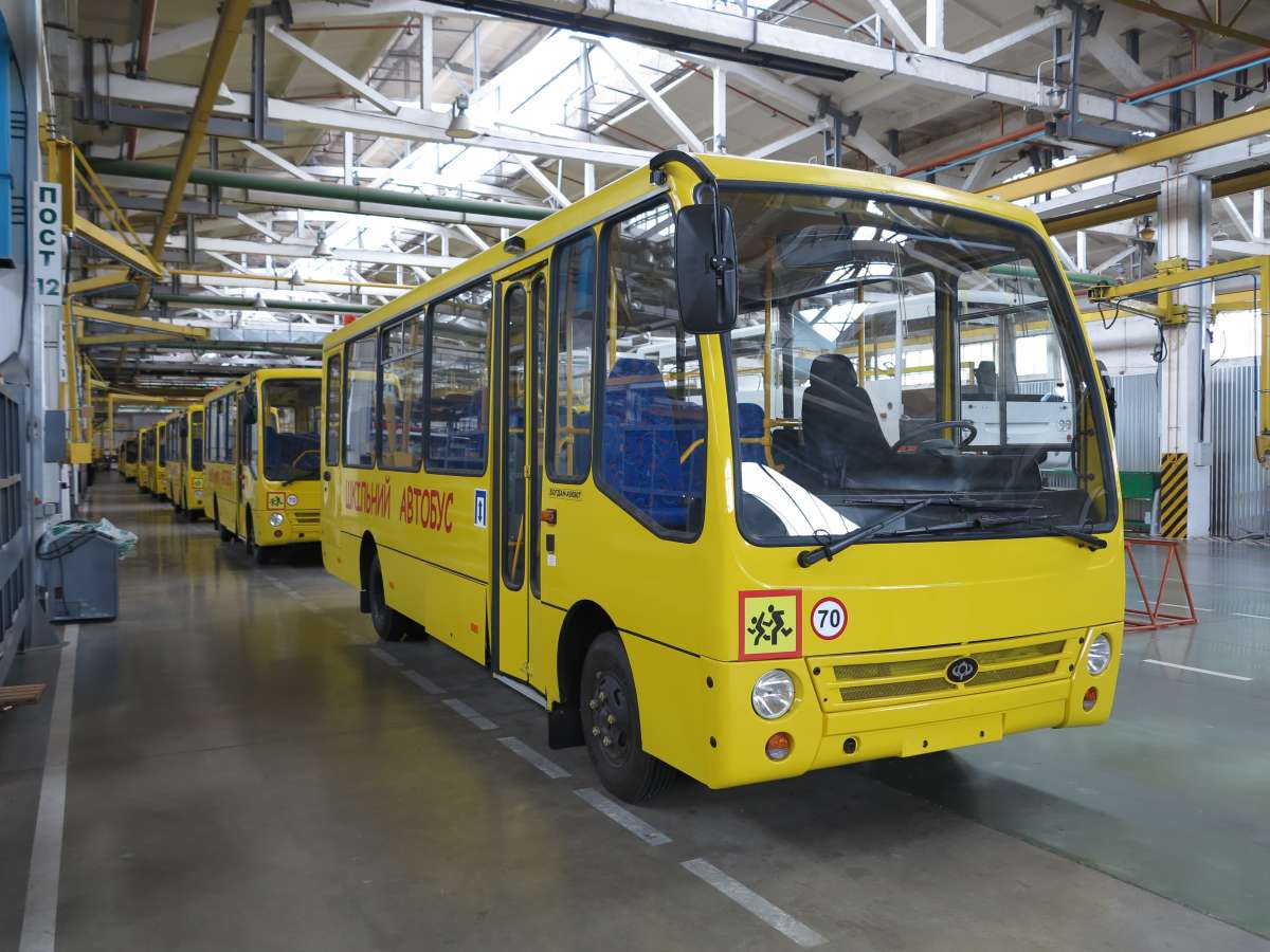 Школьный вариант автобуса Богдан А069 – на заводе, летом 2016 года.