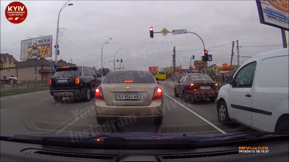 “Звичайно, коли в тебе Rolls-Royce, усі ці зустрічні, червоне світло світлофора, взагалі ПДР – зовсім не твоя тема. Хай ось ті, що поруч, дотримуються, а тобі ніколи. У тебе справи”, – свідчить підпис до відео, на якому збережено цей випадок.