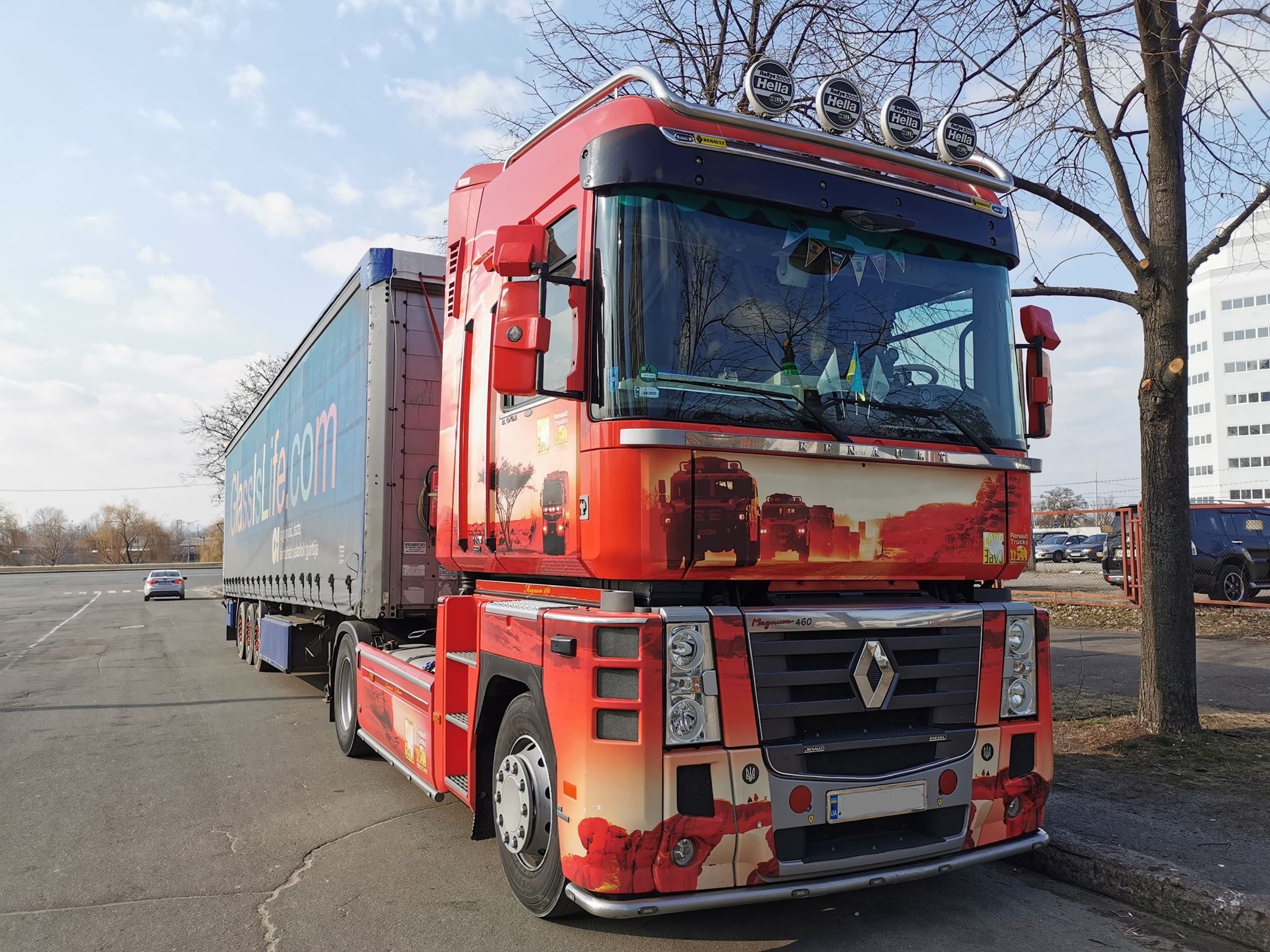 Магистральный тягач Renault Magnum не выпускается уже несколько лет, однако по-прежнему пользуется большой популярностью у отечественных дальнобойщиков. Главная фишка машины – роскошная кабина, с совершенно ровным полом. Так вот, на днях на столичных дорогах был замечен один такой тягач Renault Magnum просто с уникальной раскраской. Это настоящая авторская работа.