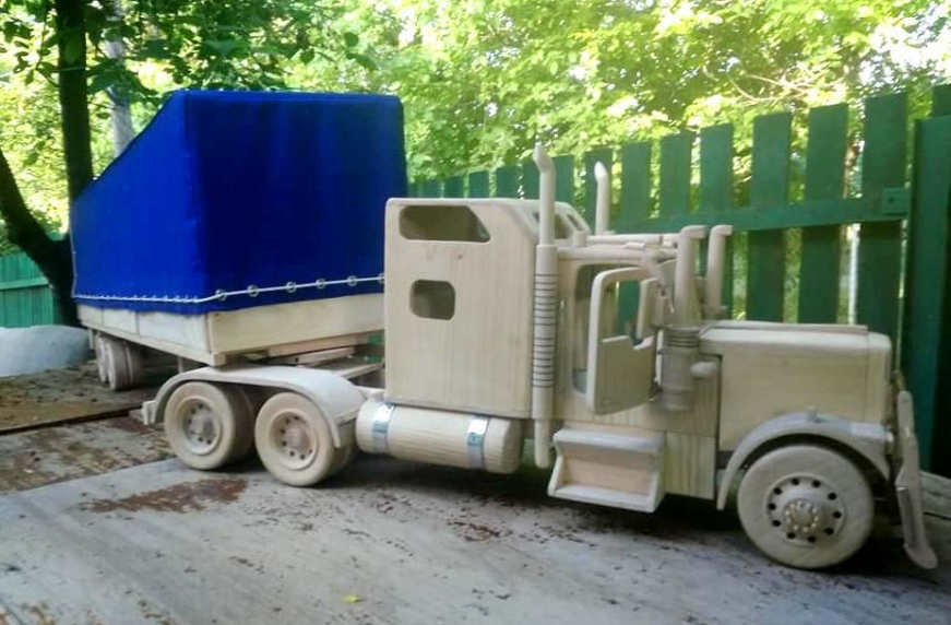 Виявляється, з дерева можна побудувати найрізноманітніші транспортні засоби, наприклад вантажівки. Ось погляньте на цей самоскид КамАЗ-5511. Саме таку незвичайну машину нещодавно представив майстер із художньої обробки дерева Валерій Назаренко з Умані, про що наочно розповідає його сторінка в Фейсбук.