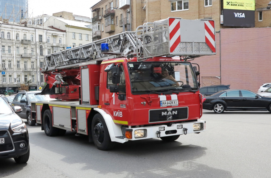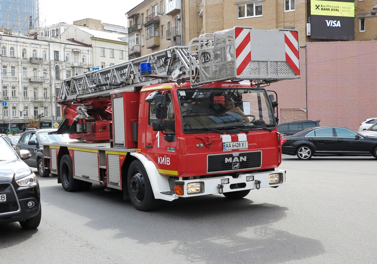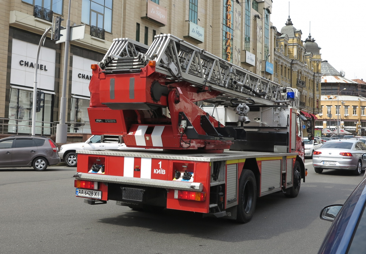 30-метровая пожарная автолестница Magirus Vario на киевских дорогах