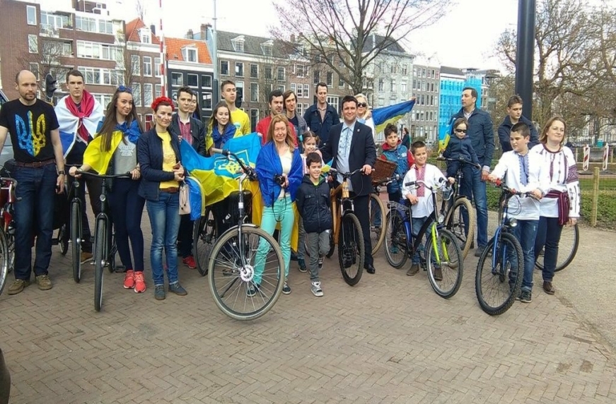 В Амстердаме стартовал велосипедный флешмоб в поддержку Украины