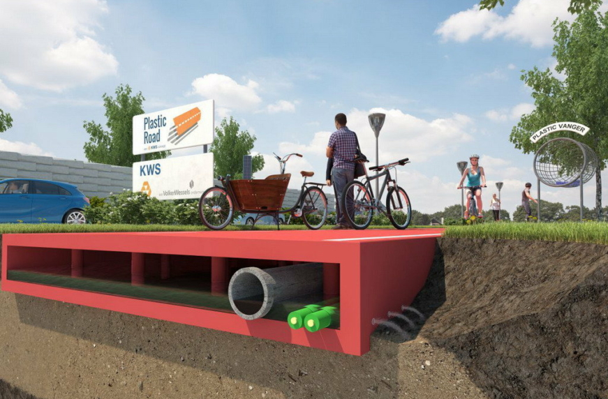 Идея создать дорогу не из асфальта или бетона, а из пластика принадлежит компании KWS Infra, которая входит в крупную голландскую машиностроительную компанию VolkerWessels. Инновационный проект назвали просто и понятно PlasticRoad. Он предусматривает изготовление специальных секций дорожного полотна из пластикового мусора – например, бутылок. Такие модули легко можно транспортировать и быстро устанавливать на месте, при этом времени на это потребуется всего несколько недель, а не месяцев как в случае с обычным асфальтобетоном. Интересно, что секции будут сделаны полыми – для прокладки внутри труб, проводов, а также дренажной системы, передает www.autoblog.com