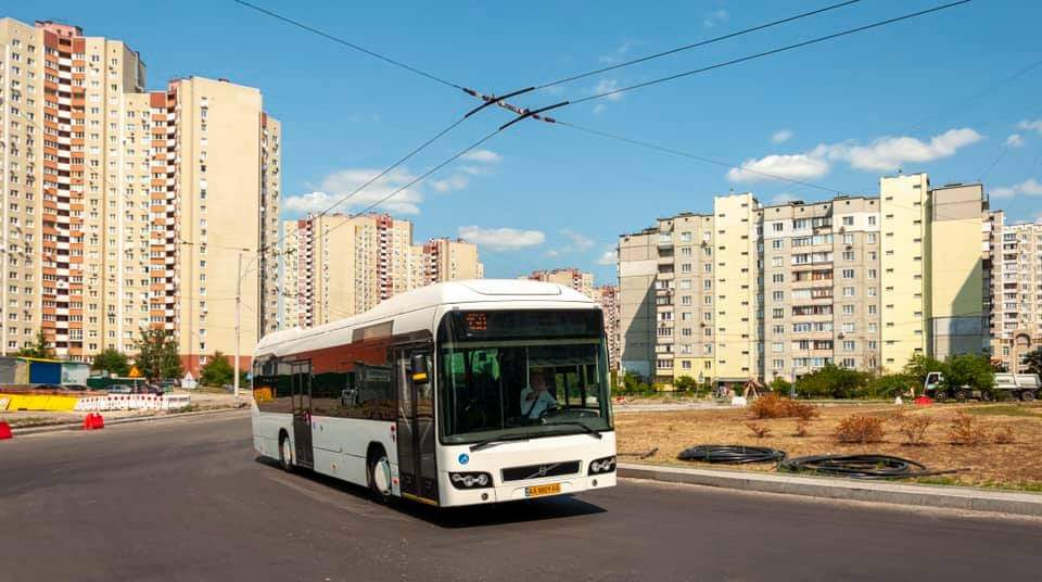 Низькопідлогові автобуси з гібридною силовою установкою Volvo 7700 Hybrid працюють маршрутним таксі під номером 150, розвозячи пасажирів від вулиці Милославської, що на Троєщині, до Індустріального шляхопроводу.