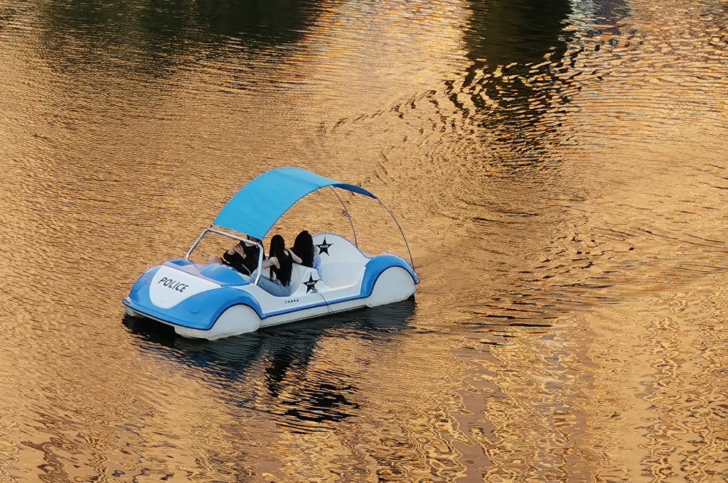 На Русановском канале в Киеве этим летом появился новый вид развлечения – катание на необычных с виду плавсредствах. Это катамараны, которые по дизайну довольно точно повторяют легендарный Volkswagen Beetle – достаточно посмотреть на характерные полукруглые крылья со светотехникой.