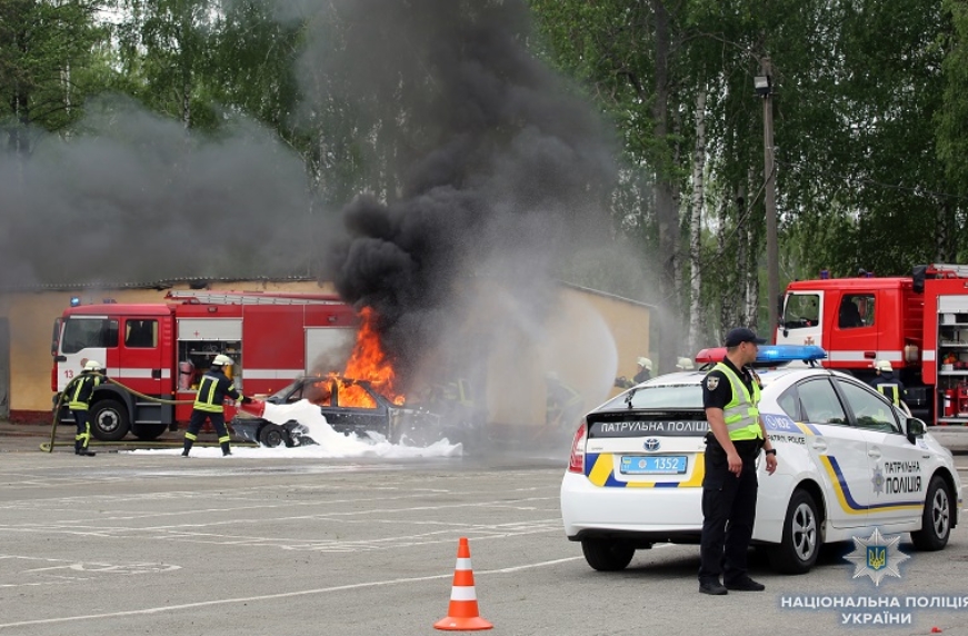 В Киеве прошли масштабные учения с пылающими авто и вертолетом