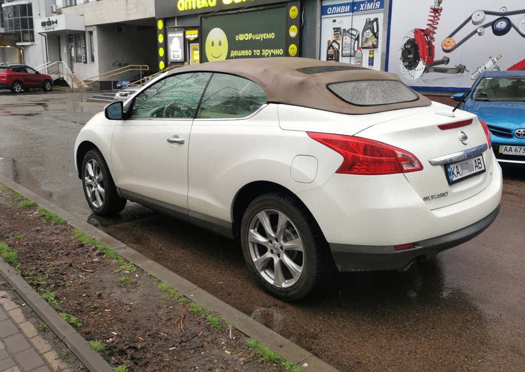 Днями у Києві кореспондентові «Автоцентру» вдалося сфотографувати досить рідкісний автомобіль – Nissan Murano Cross Cabriolet. Це перший у світі повнопривідний кросовер із кузовом кабріолет. Машину було презентовано восени 2010 року на автосалоні в Лос-Анджелесі, проте через свою екстравагантність її не було оцінено на північноамериканському ринку.