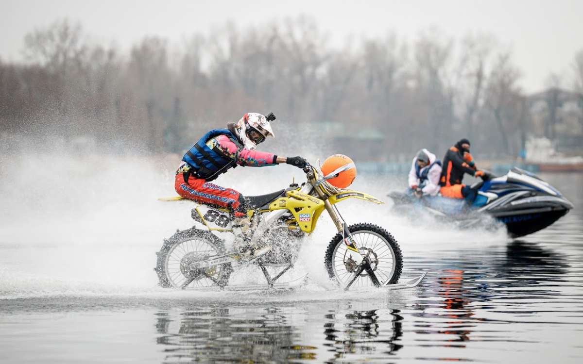 Во вторник, 24 декабря, в Киеве возле Пешеходного моста на Трухановом острове 27-летний мотокроссмен Сергей Совяк, член команды Spirit Racing Team, при поддержке Liqui Moly Ukraine впервые в Украине совершил заезд на мотоцикле по воде