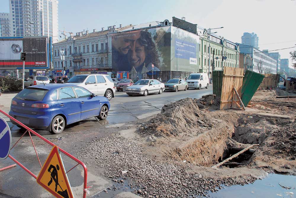 Проехали на Воздухофлотский проспект. Одна его полоса в сторону Жулян перекрыта. Правда, ограждение сделано на совесть. Сплошной забор, дорожные знаки, освещение по контуру ограждения и бригада рабочих. В авангарде – машина, дробящая асфальтовое покрытие, замыкающий – экскаватор, вынимающий грунт. Но тут же, буквально в 100 метрах в сторону центра, – другой пример. Около полугода назад там засыпали канаву и уложили первый слой асфальта. На этом энтузиазм или деньги иссякли, и теперь первая полоса примерно на 10 см ниже второй. Этот сюрприз ожидает едущих по первому ряду в начале плавного левого поворота улицы. Превысил скорость, и машина, в левом повороте соскальзывающая на нижний уровень, резко кренится вправо и может закончить свой путь на крыше.