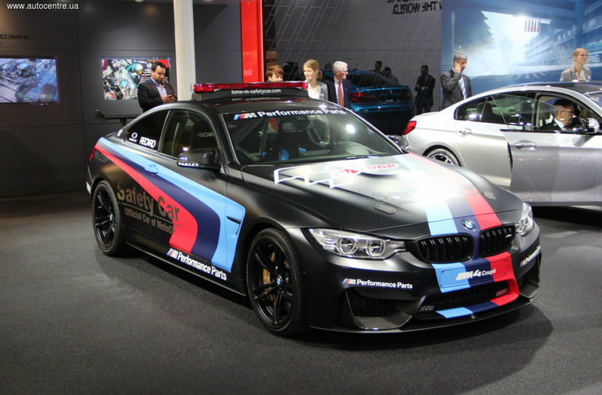 На стенде компании также представят спортивный автомобиль BMW M4 MotoGPSafetyCar с системой впрыска воды во впускной коллектор для большей отдачи двигателя. BMW M4 вновь возглавит парк автомобилей безопасности в новом сезоне гонок MotoGP. Однако этот автомобиль от компании BMW M GmbH уникален: на BMW M4 MotoGPSafetyCar дебютирует система впрыска воды во впускной коллектор, повышающая мощность двигателя. Эта технология способна понизить расход топлива и уровень выбросов. В рамках автосалона также состоится презентация новых сервисов для BMW i3 и BMW i8 в рамках развития программы 360o ELECTRIC касаются каждого аспекта электрической «мобильности».