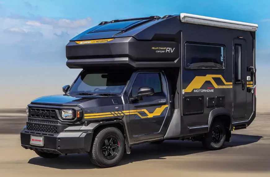 Тайська компанія Carryboy підготувала оригінальний кемпер альковного типу на шасі популярного пікапа Toyota Hilux. Будинок на колесах здатний розмістити на нічліг до 6 осіб, а комфорт їм забезпечать невелика ванна кімната, їдальня та телевізор діагоналлю 32 дюйми.