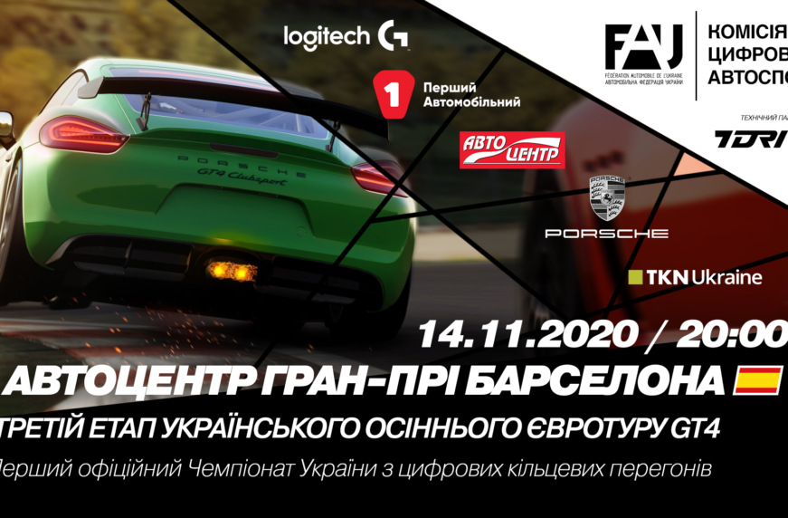 Третий этап Чемпионата Украины по цифровым кольцевым гонкам “Автоцентр Гран-При Барселона” пройдет уже завтра вечером. Напомним, что Чемпионат «Украинский Осенний Евротур GT4» проходит под эгидой ФАУ и завершится вначале декабря, а Чемпионы дисциплин автоспорта будут также награждены на официальной церемонии награждении Федерации.