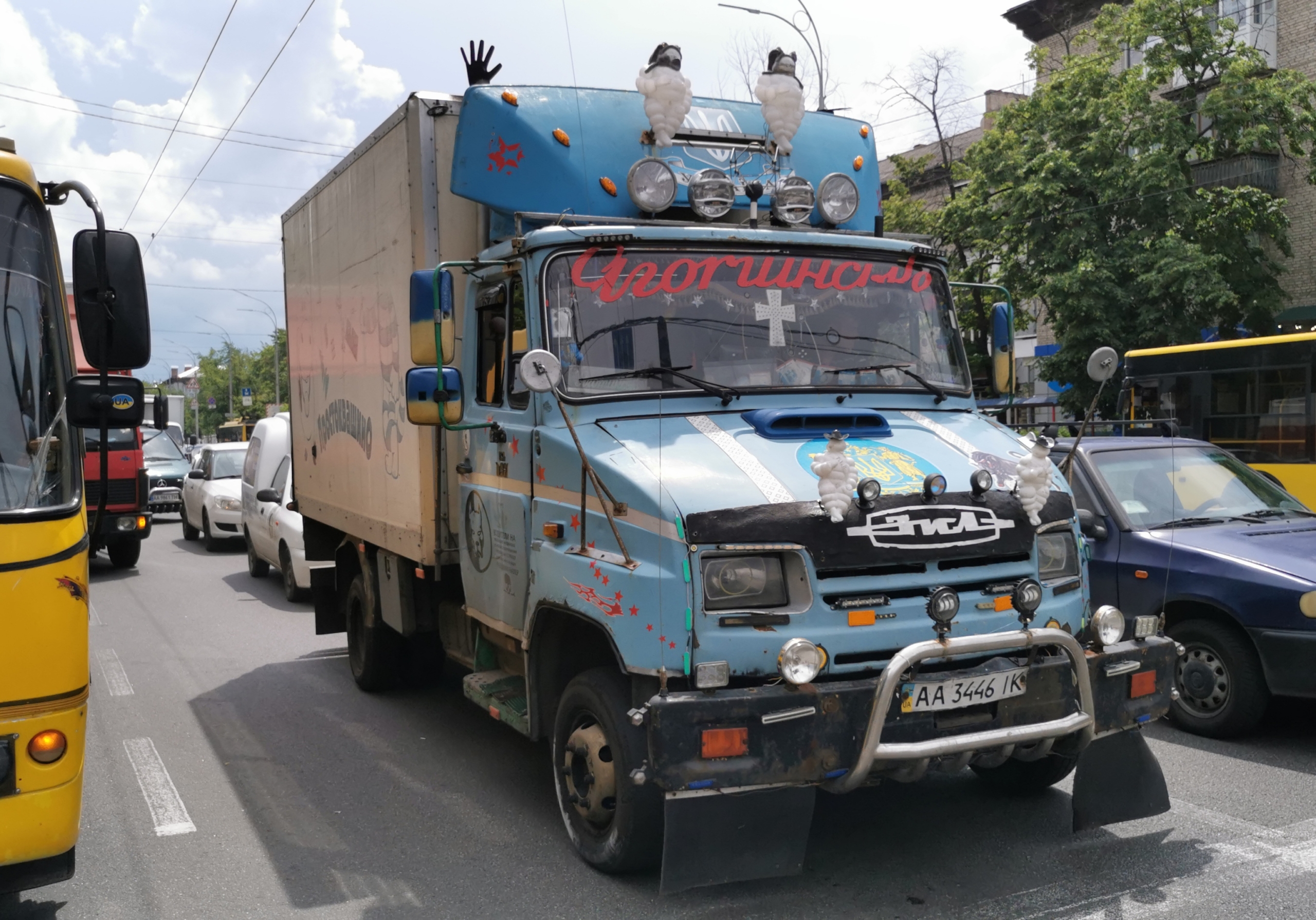 Владелец так захотел облагородить свой автомобиль, что превратил его в такой-себе один большой Бибендум, украсив кабину знаменитыми фигурками надувного человечка – фирменного символа шинниго гиганта Michelin.