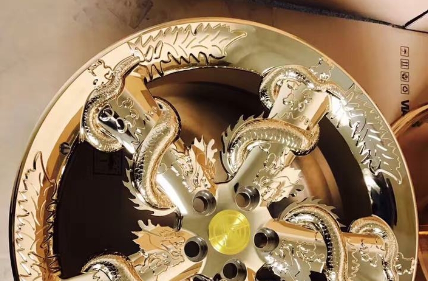 Китайські колісні диски виконані в стилі популярного серіалу «Гра престолів». Ці 22-дюймові колеса позолочені і прикрашені зображеннями драконів. До речі, дракона в Китаї особливо шанують, адже це символ мудрості.