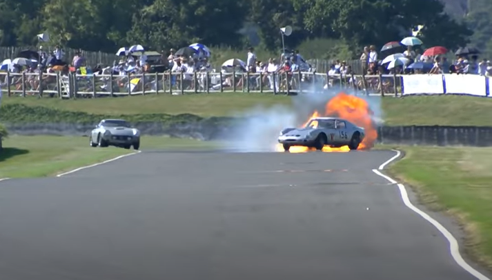 На черговому повороті Ferrari занесло і тієї ж хвилини з його задньої частини вирвалося полум’я. Гонщик зміг повернути контроль над автомобілем та з’їхати на узбіччя, не отримавши каліцтва. Техніки, що були поруч, загасили вогонь за лічені секунди, тим самим врятувавши найвідоміший Ferrari від знищення.