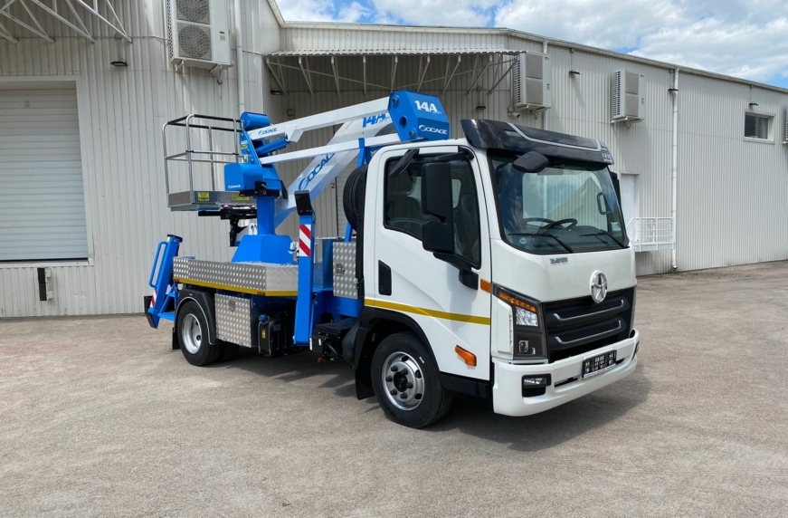 Кременчуцький завод комунальної техніки “Альфатекс” днями поставив замовнику в Рівненську область автовишку Socage моделі А314 на шасі Dayun CGC 1060. Машина відрізняється компактними розмірами та маневреністю, що полегшує роботу в обмежених міських умовах.