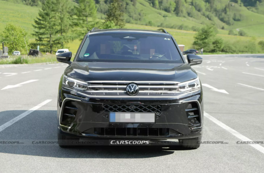 Виробник застосував на кросовері з обробкою R-Line прихований камуфляж, але деякі нововведення все ж таки розглянути вдалося. У нього вертикальні повітряні завіси з новими горизонтальними елементами, а ще нижня решітки з ромбоподібним наповненням. Також можна відзначити двоколірні колісні диски.
